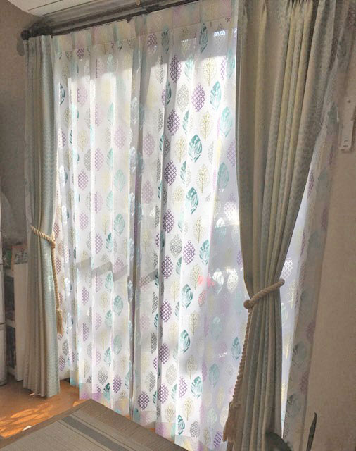 オパールプリントのカーテンは透明感も強く、光に当たるときとキラキラしてすごく綺麗です。