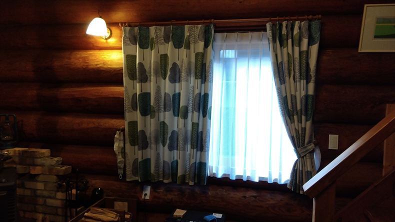 ベランダ側のカーテンは幅が片側145cmなので途中で繋げて有りますが、