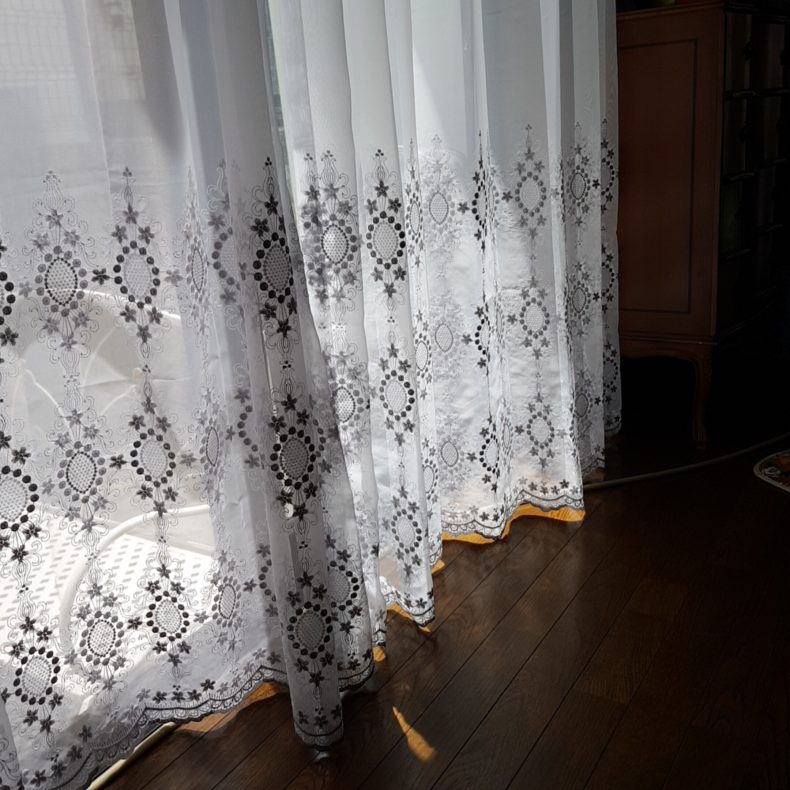 ●当店オリジナル●【トルコ刺繍レースカーテン】■1.5倍ひだ仕様・ウォッシャブル <グレームーン-gray moon->