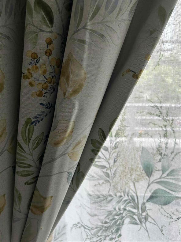 落ち着いた色使いで派手になりすぎず、草花柄のドレープカーテンと相性抜群です!