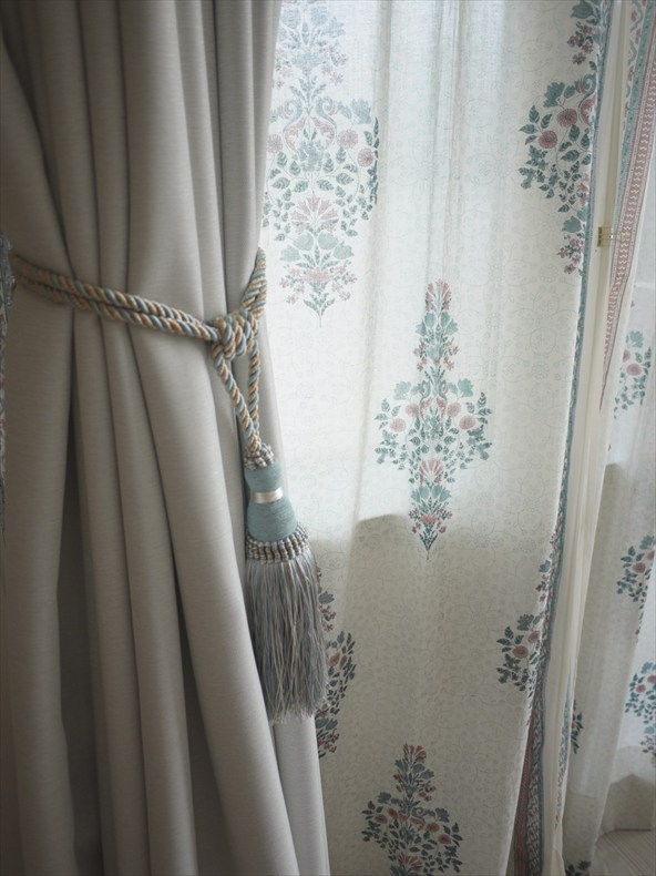 水色のタッセルがとても合っていてお気に入りの空間を演出してくれる存在感抜群なカーテンとタッセルをとても気に入っています!