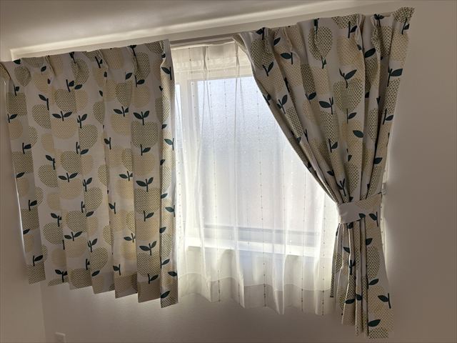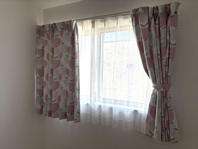 お子様にもカーテンに【りんご】のカーテンをお気に召していただいているようで、嬉しい限りでございます。