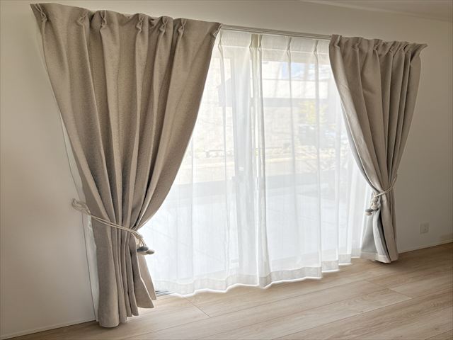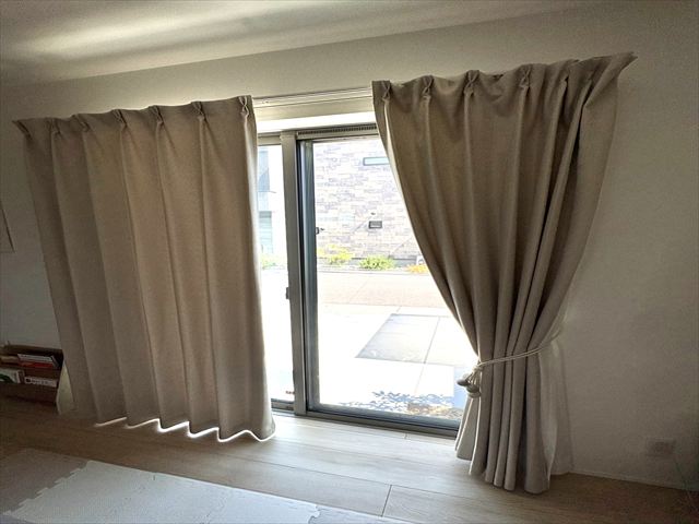 今回新居の厚手のカーテン一式(+タッセル)をびっくりカーテンさんで揃えさせて頂きました!