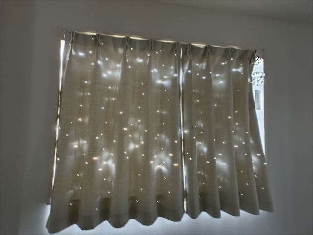 当店オリジナルで、日中の日差しを活かしてキラキラ光りが漏れるのを楽しむ厚地カーテンは、とても可愛いですよね。