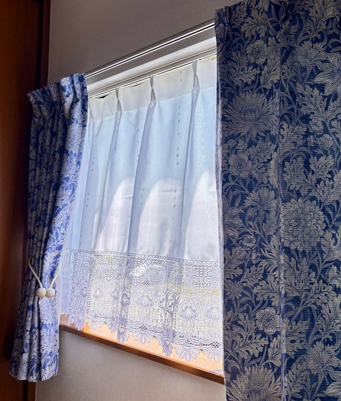 びっくりカーテンでは2階のひと部屋にマリン調の厚手とレースカーテンを何年か前にお願いし、気に入りその