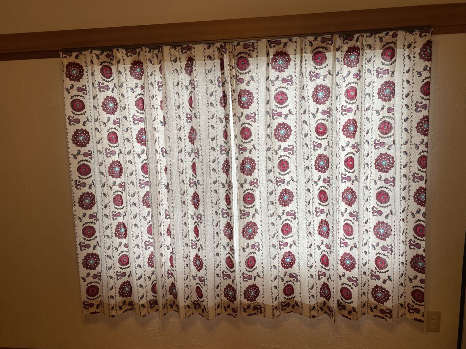 コットンならではの優しい質感が魅力的なカーテンで、昼間は厚地カーテンを開けていただいた時にも、