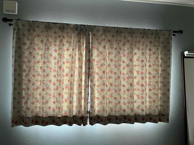 窓辺を明るくしたくて非遮光にしました。小花模様がこれまたとてもかわいくてお部屋が明るくなりました。