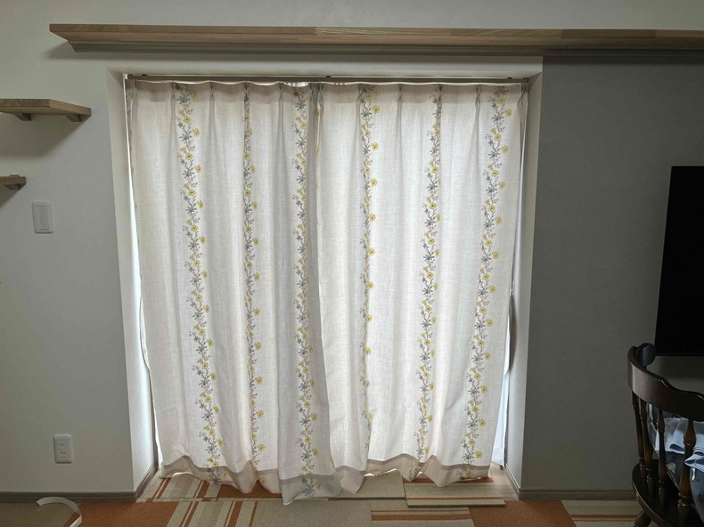 窓辺を明るくしたいという思いから非遮光をお選びいただき、小花刺繍のやさしい雰囲気でお部屋が明るくなったとのこと、まさにデザインの魅力を感じていただけて嬉しいです。