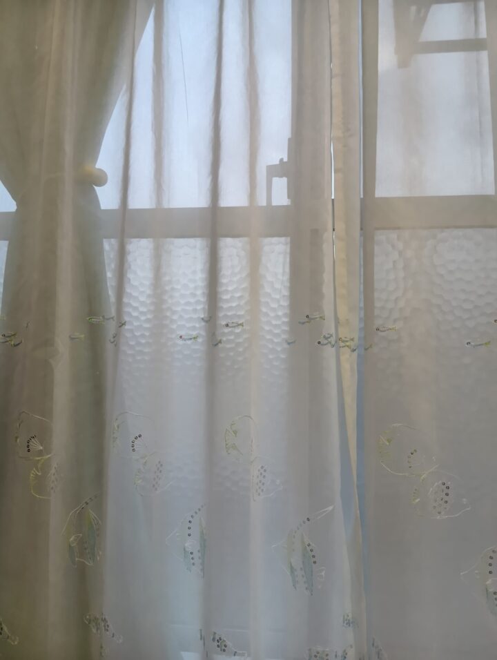特に魚型にくり抜かれたカーテンと、魚柄の刺繍やスパンコールのついた可愛いレースカーテンを重ねると可愛いすぎて唸りました!