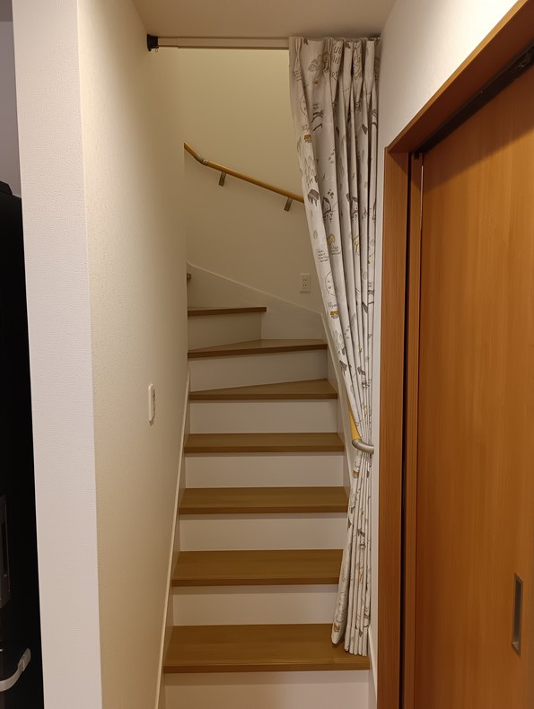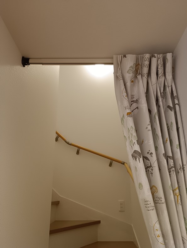 階段からの冷気シャットアウトのために、階段カーテンを設置しました。