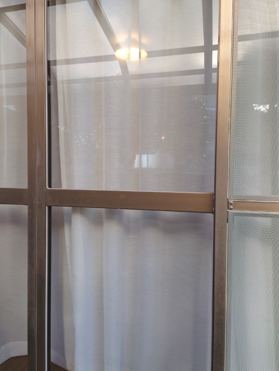 (中からはうっすら外が見え、誰か通ると分かる感じ、外からは反対側の窓や光源が見える位です。)