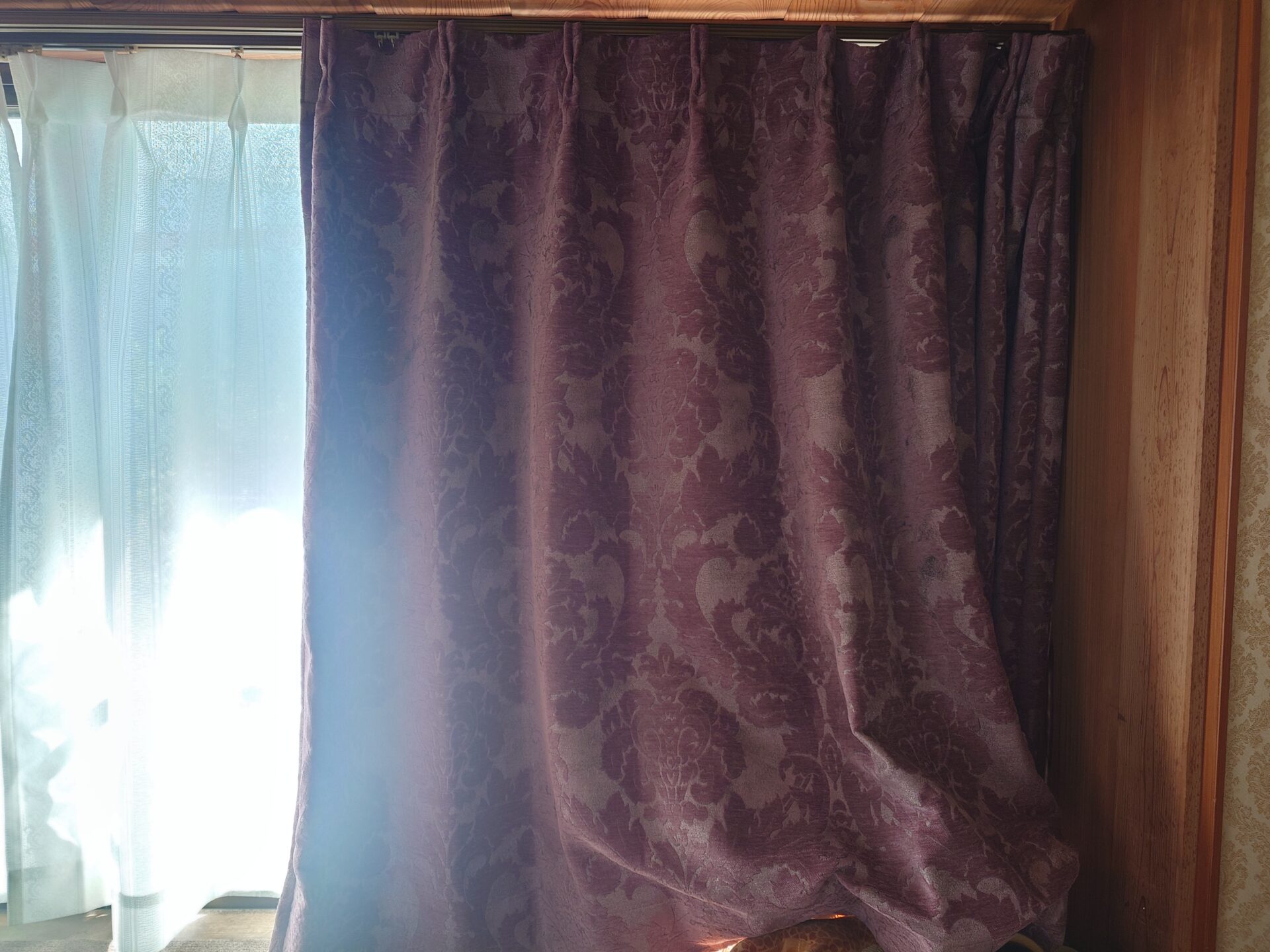 厚地カーテンを<ルルド ワインレッド>、