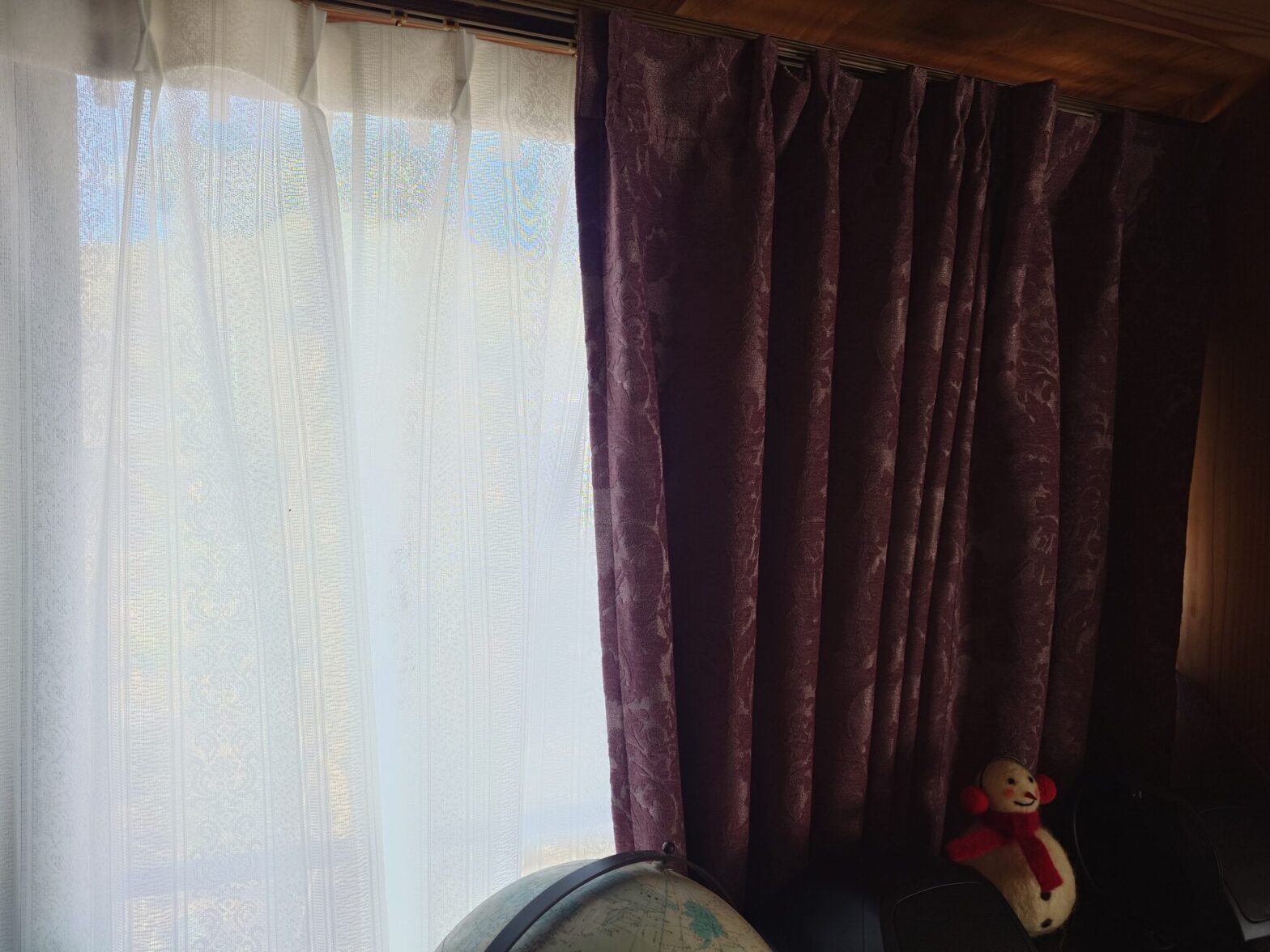 厚地カーテンを<ルルド ワインレッド>、