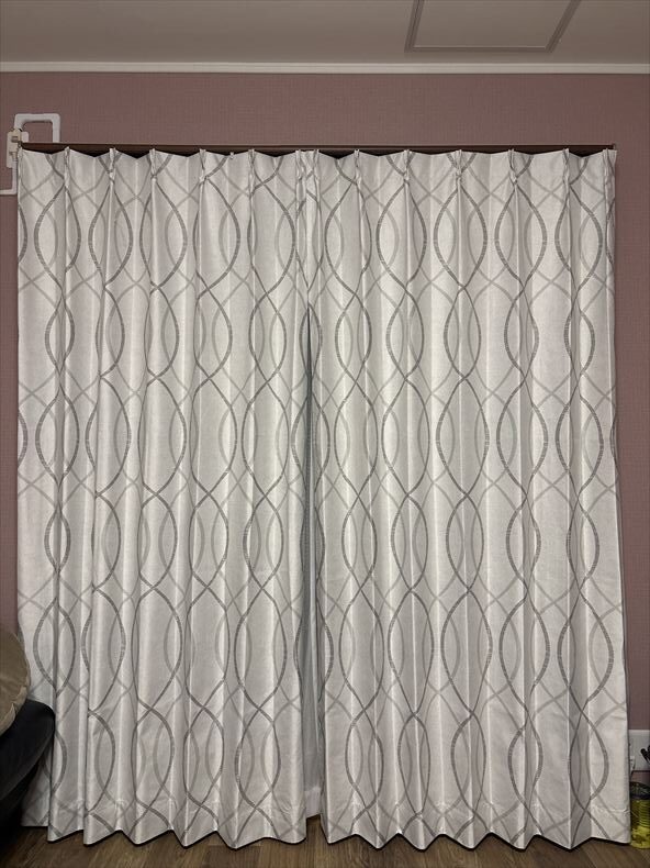 形状記憶加工付きのカーテンは、加工後すぐに畳んで包装するため、到着後は少しシワなどが残っている場合がございます。