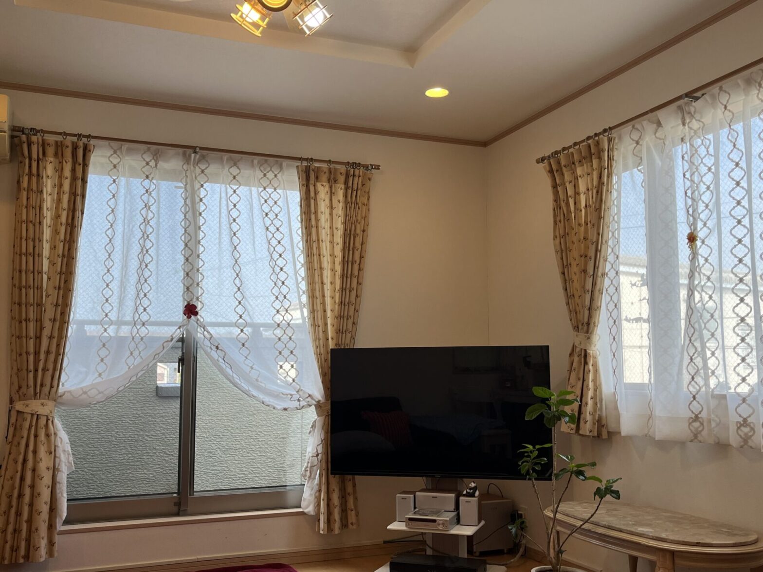レースを華やかなものにしていただいておりますので日中の窓辺が素敵な空間になっていますね(*’ω’*)✨