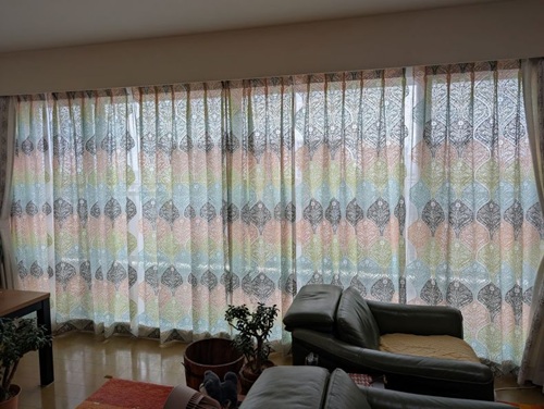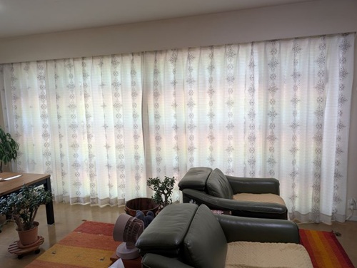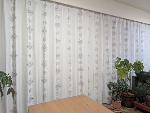 とはいえ、厚地のカーテンまで柄物にするには勇気が入り、その気持ちを察して下さった担当の方が勧めて下さったのが白地に刺繍のカーテンでした。