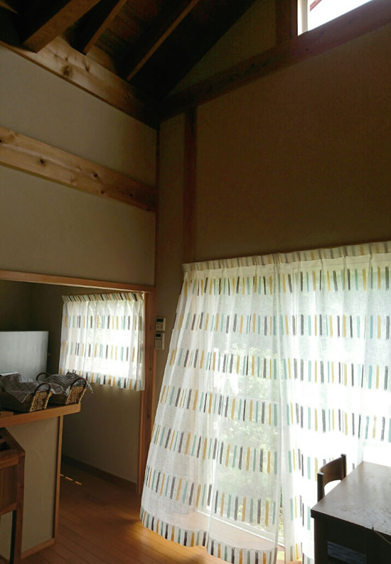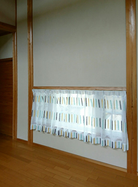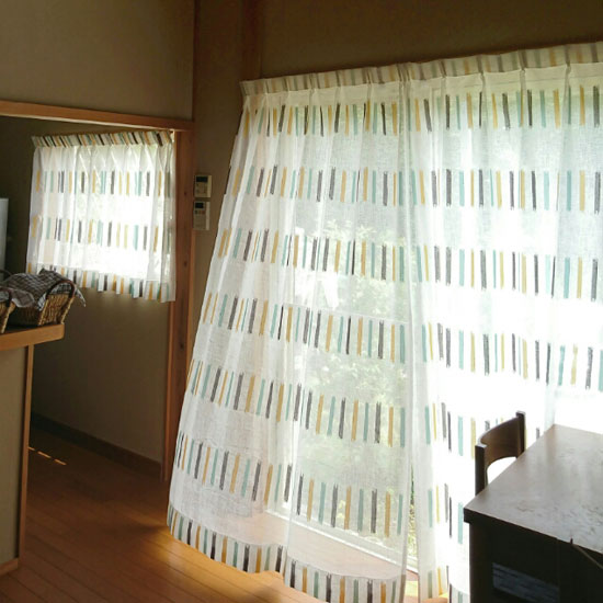 珪藻土の壁と木の柱に合うレースカーテンを探していました。