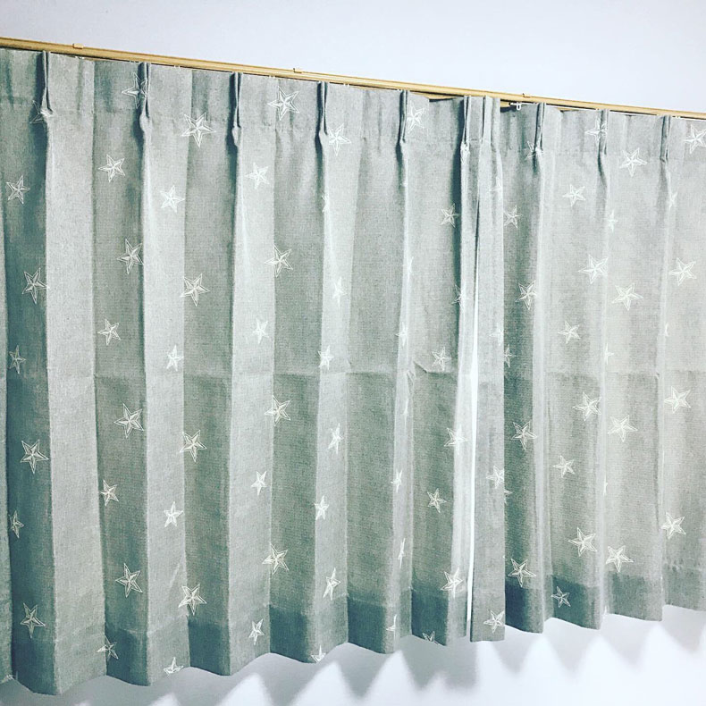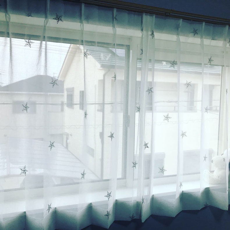 腰窓の方はカジュアルに刺繍の★お星さまデザインの<クルト>をレースとペアでコーディネートいただきました!!