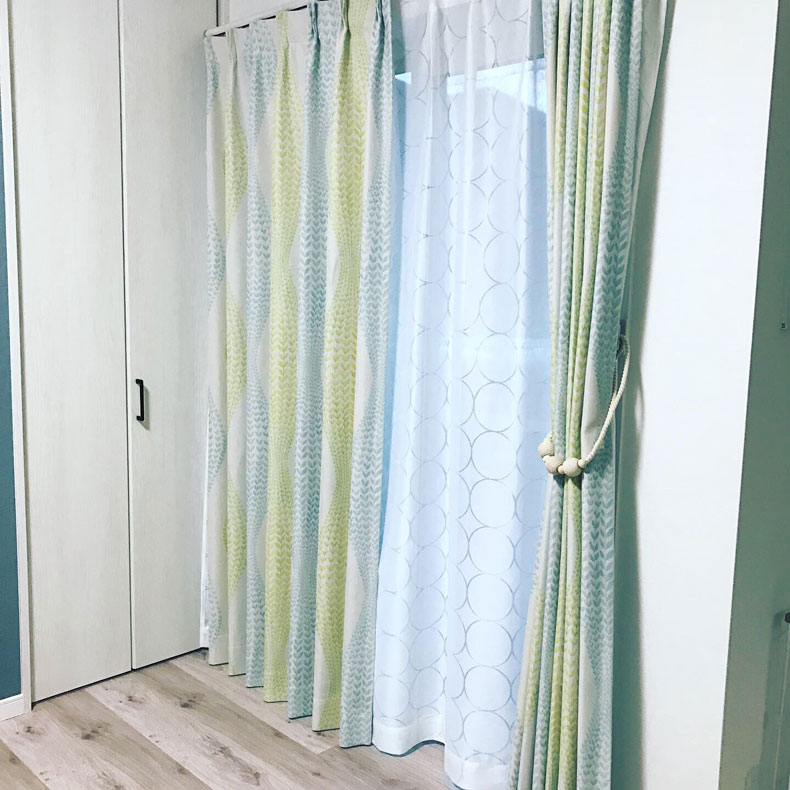 優しいカラートーンなので大きな窓にかけられても柔らかくお部屋を明るい印象にしてくれます!