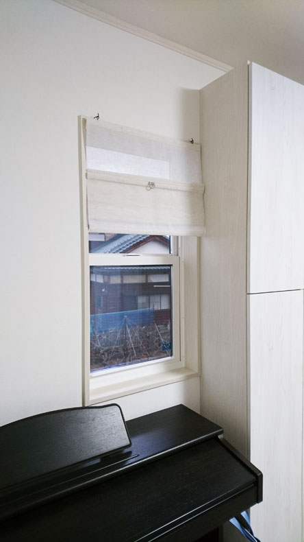 リビングの机の前の窓と、その隣のピアノの前の窓に取り付けました。