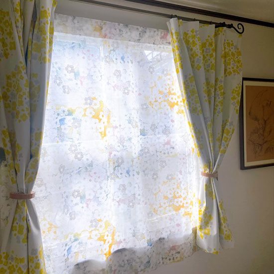 <レースレヴール>は、一面に広がるお花柄と、水彩のような鮮やかな色合いがとっても可愛いレースカーテンです!