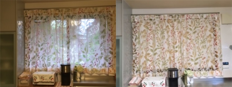 キッチンのボタニカル模様がとても気に入ってます。透ける感じが外から見てどうか心配でしたが、これなら大