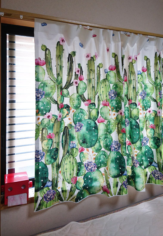 イメージチェンジ兼ねて好きなサボテン柄のカーテンに一目惚れで決めましたがこれも私好みの部屋により変わったような気がしました。