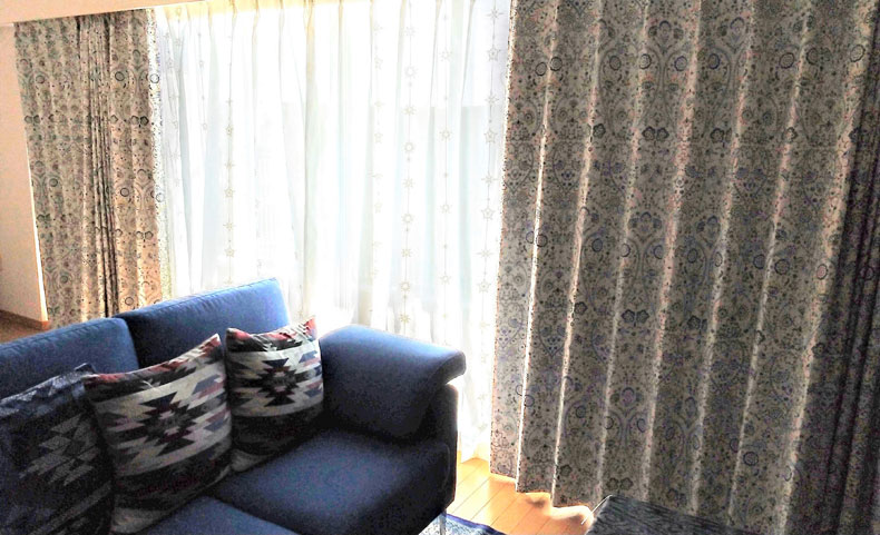 窓の間口が広いので、完全にカーテンを閉めると、圧巻の美しさです。