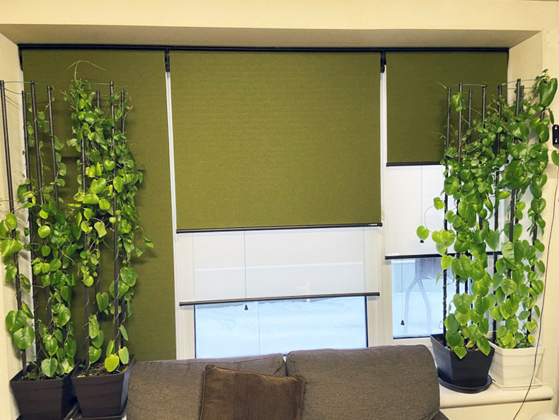 今回、1台2役のロールスクリーンを発注し取り付けてとってもスッキリしたイメージです。