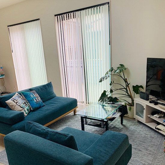 腰高窓から間口の広い窓まで、50色の豊富なカラーから選べるタテ型ブラインド【ラインドレープ】。