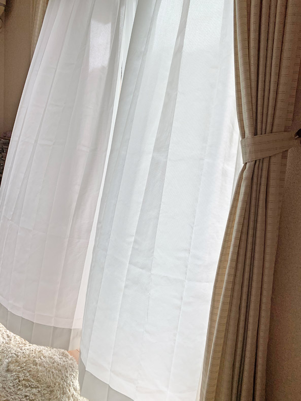 通常の遮像レースカーテンの1.9倍以上の光をお部屋に取り込み、光を拡散するのでレースカーテンを付けることでよりお部屋全体が明るくなる機能があります♪