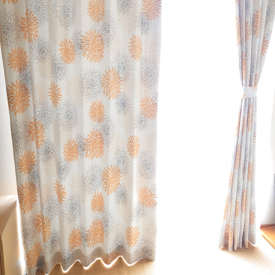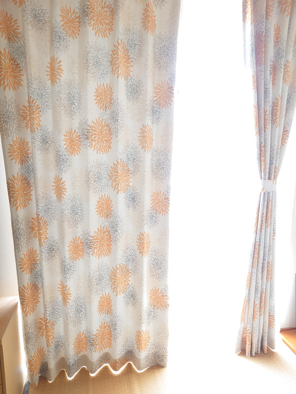 和室のブラインドをカーテンに交換して、気持ちよい雰囲気になりました。