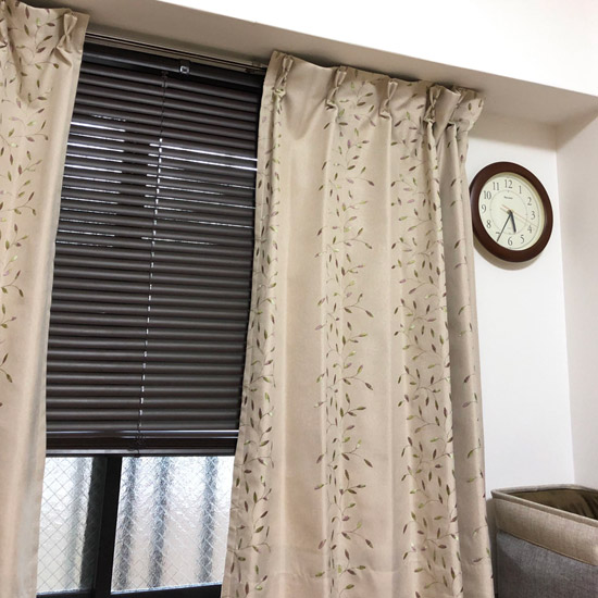 いままでかけていたカーテンが遮光ではなかったのでブラインドと組み合わせていました。