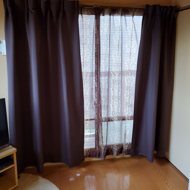 どこを探しても非遮光かつ気に入る色や柄がなく、何年もかけて探し続けてびっくりカーテンさんに辿り着き、