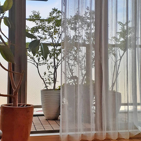 ベランダの木々がうっすら見える透け感もいい感じです。