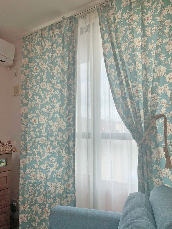 絶妙なヴィンテージブルーで、遮光ではないですが光の透け方がとても綺麗で気に入りました。