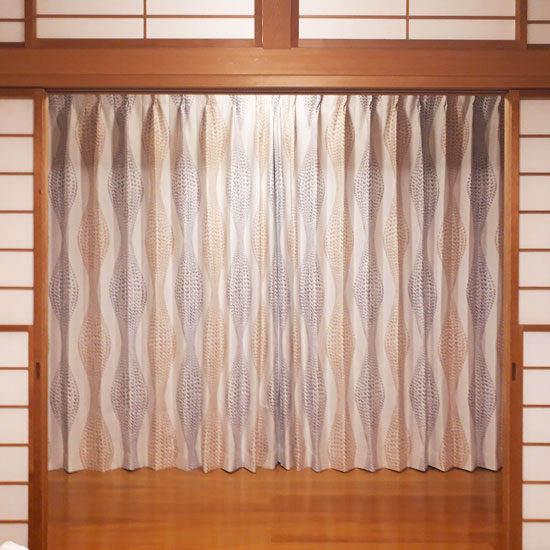 北欧調カーテンですがお客様のように和室や洋室色々なテイストでご使用いただけるカーテンです◎