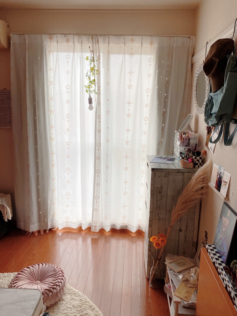 アイボリーカラーがレースカーテンのお色も邪魔しないので、