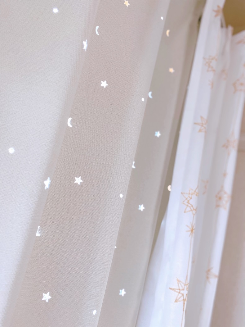 <シャインスターズ アイボリー>は星と月のモチーフにくり抜かれた穴から