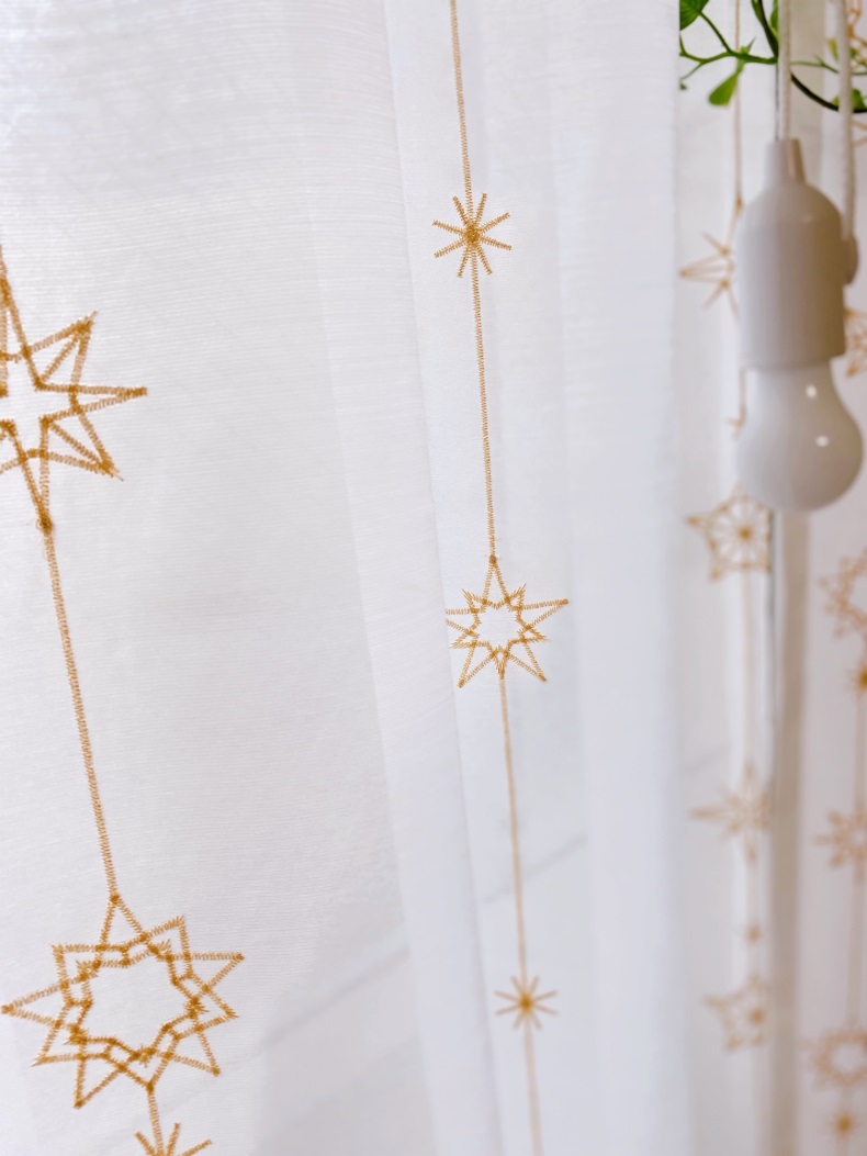 スターのオーナメントデザインを上品にゴールドの刺繍であしらわれたレース<レース マジック>は
