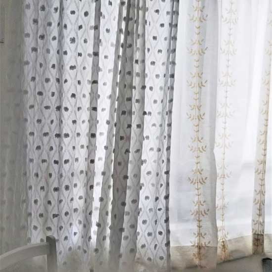 晴れている日、曇りの日、光の当たり具合によってカーテンの表情は変わるので、