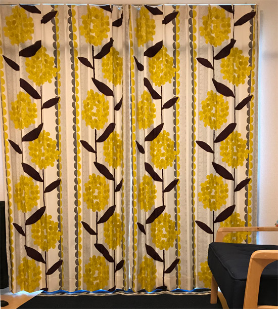 【北欧VINTAGE】2級遮光・形状記憶付きカーテン <VOIKUKKA - ヴォイクッカ イエロー>