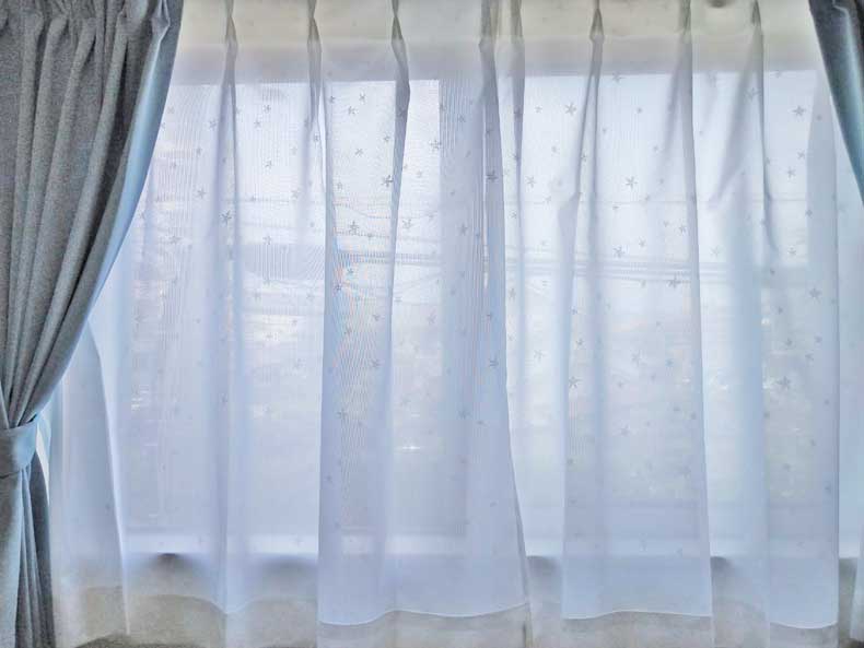 シャイニーベールスターズのレースカーテンは柄が可愛く子供らしいなぁと思い購入しました!機能も外から見