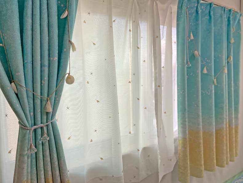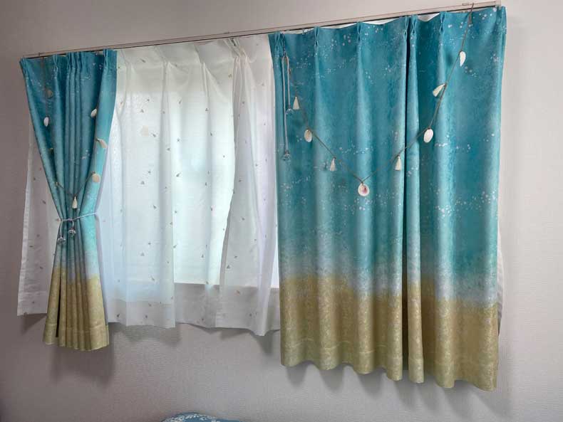 特にモーニングビーチのカーテンは写真より実物の方が色合いが綺麗で、眺める度に一人で可愛い可愛いと呟いております!