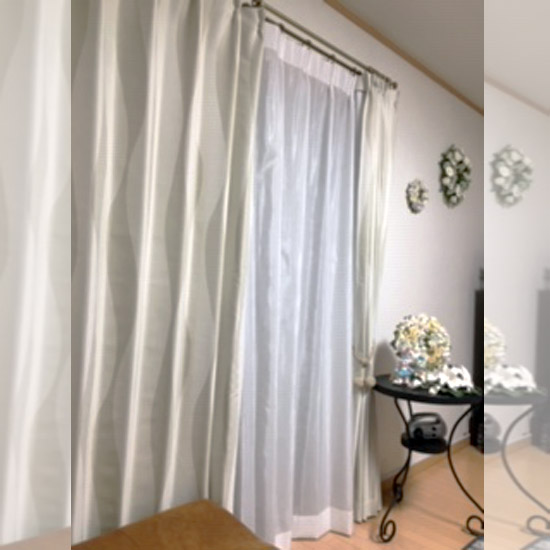 ご感想にもございますとおりレースカーテンでお選びいただいております