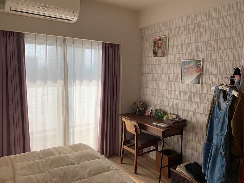 窓にはルーバーが備わっているので、お洒落で壁紙や部屋の雰囲気に合わせて選びました。