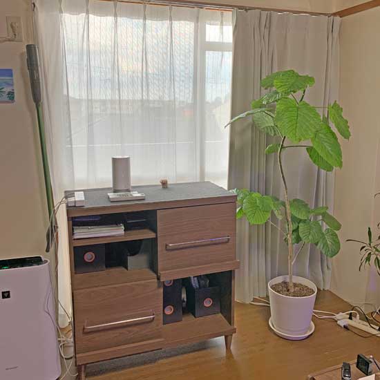 大きな観葉植物を邪魔しないシンプルなカーテンで、インテリアも色々楽しんで頂けそうです☆彡