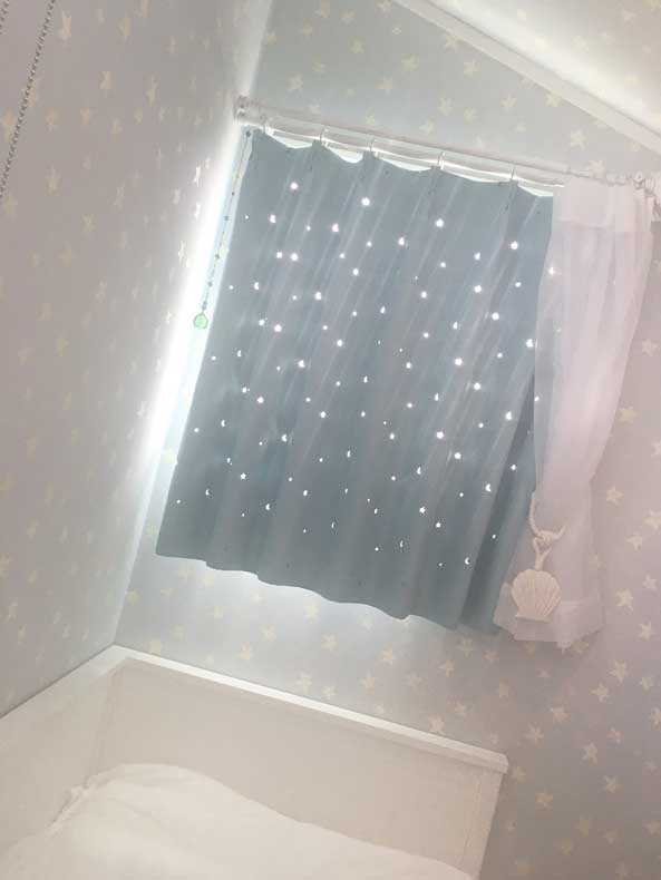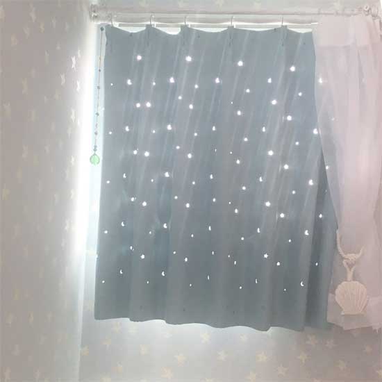 ■【星と月のデザイン】 超音波カットでキラキラきれい!ウォッシャブルカーテン<シャインスターズ ブルー>※シェード作成不可