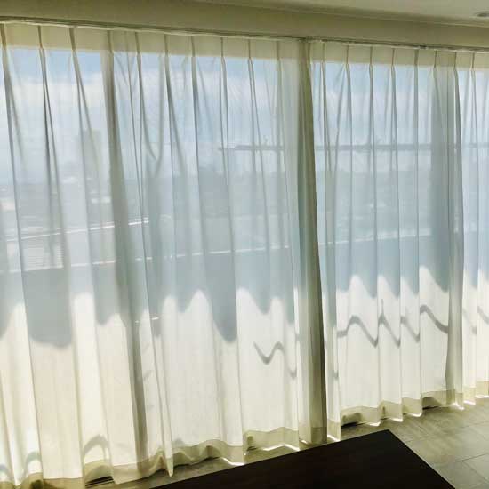 この度ご購入のレースカーテンのように、ヒダのあるカーテンはレール幅に対して