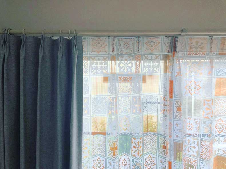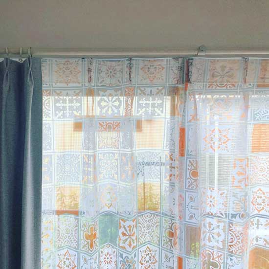 リビングのイメージを変えたくて、思い切って柄物のレースカーテンにチャレンジしました。